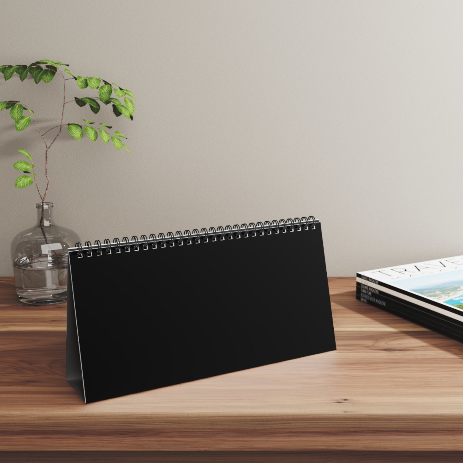 A minimalist, customizable desktop calendar that brings calm order to your workspace.  The low-profile landscape format lets it tuck in front of monitors or rest beside a notepad, quietly organizing days without shouting for attention.